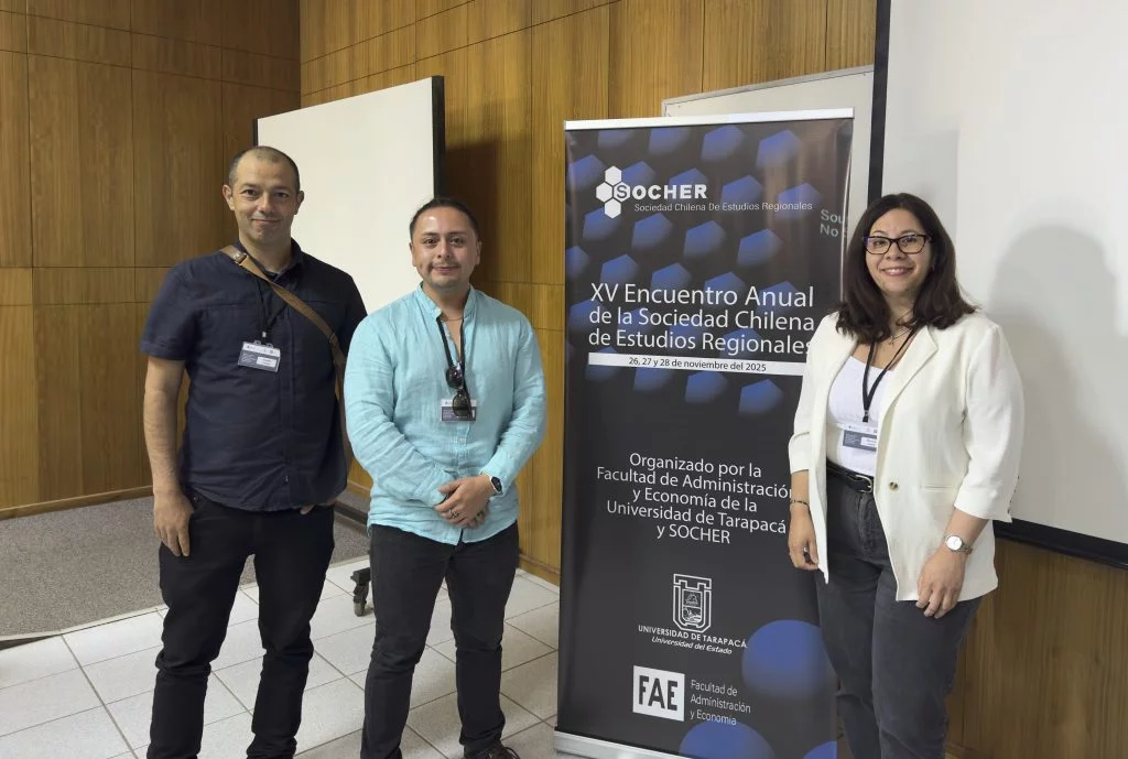 Académicos y académicas de la Escuela de Administración y Negocios presentaron investigaciones sobre desarrollo territorial, econometría espacial y políticas públicas.Cinco miembros de la Escuela de Administración y Negocios (EAN) de la Universidad de Concepción, campus Chillán, participaron activamente en el XV Encuentro Anual de la Sociedad Chilena de Estudios Regionales (SOCHER 2025), realizado del 26 al 28 de noviembre en la Universidad de Tarapacá, en Arica.