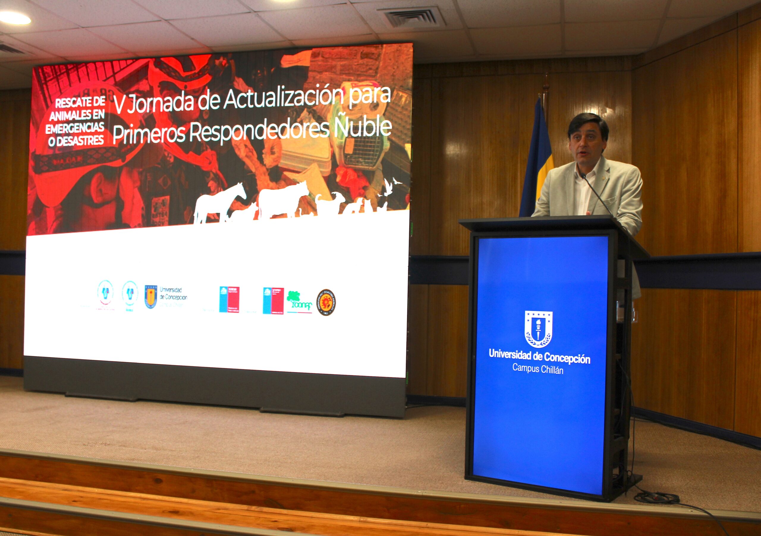 En el auditorio José Suárez Fanjul de la Universidad de Concepción Campus Chillán se reunieron equipos de primera respuesta, Bomberos, Carabineros, Fuerzas Armadas, Brigadistas, equipos municipales, académicos, profesionales, voluntarios, ONG y estudiantes, para abordar un desafío técnico, ético y también profundamente humano, como lo es el rescate animal ante emergencias o desastres.