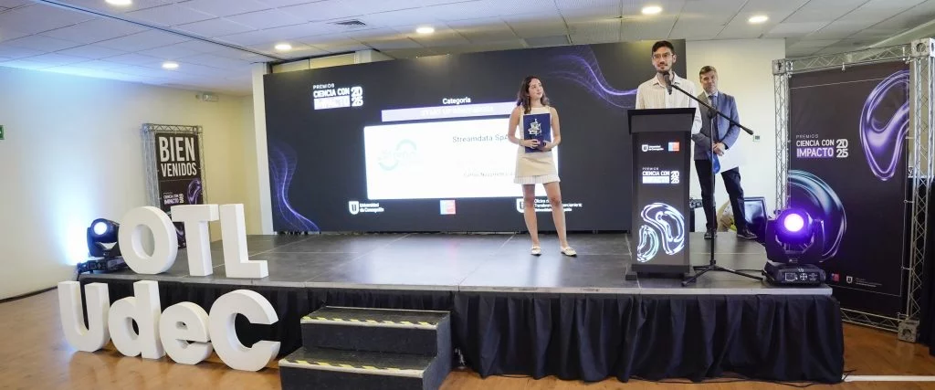 El premio Start Up Innovadora reconoció a Streamdata SpA, spinoff UdeC liderada por el académico Carlos Navarrete Lizama, de la Facultad de Ingeniería. Esta empresa firmó durante 2025 la licencia de la tecnología homónima desarrollada en la UdeC, un un motor de búsqueda y análisis de datos, que mediante el uso de inteligencia artificial, simplifica labores de obtención de datos, creación de reportería especializada, y predicciones de mercado. Con esta versátil herramienta, han logrado entrar al mercado, teniendo ya sus primeros contratos.